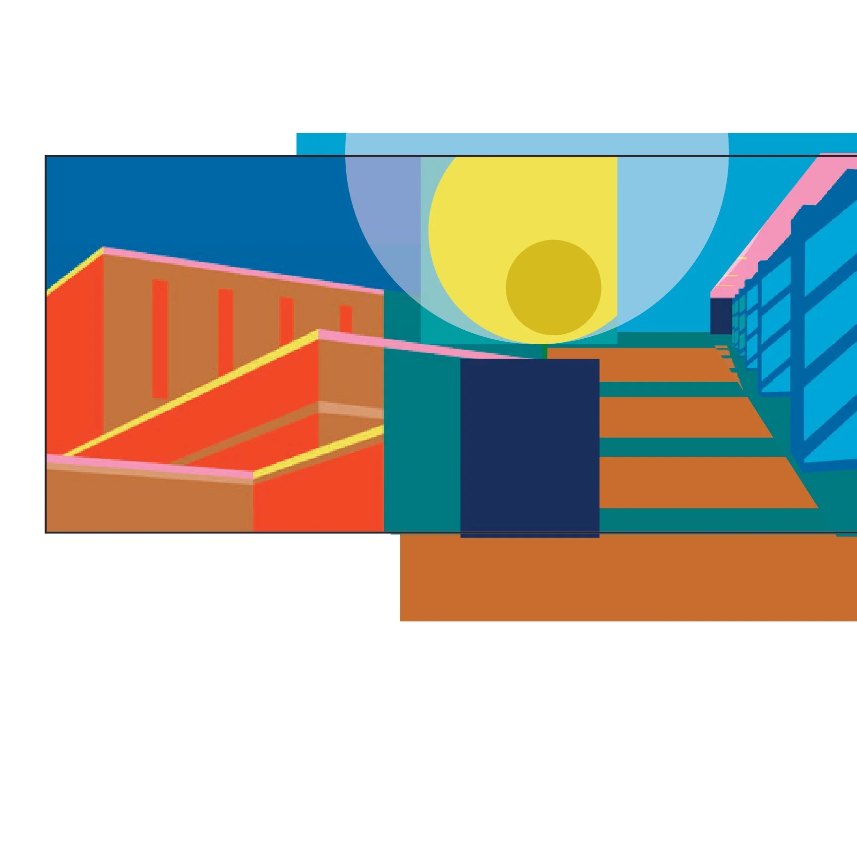 The abstracted building is an interpretation of the school’s architecture, while the greenery in the background reflects the abundant nature and wildlife surrounding the school. The students pictured are abstracted images of freshmen, sophomores, juniors, and seniors at Harriton, directly referencing the student body. Originally it was a struggle to decide whether or not to include figures, but previous designs lacking students also lacked the human aspect of Harriton.